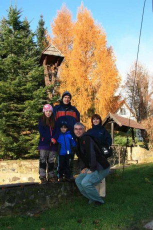 Do žluta obarvený modřín nám dělá pěknou kulisu