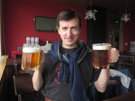Chata Andula tam opravdu ležela a v ní druhý bod do naší pivní cesty - minipivovar Fries! Loni jsme ho sice již navštívili, ale bylo to 14 dní před otevřením a pivo jsme tenkrát měli jen od sládka z tanku. Letos už proběhla opravdová ochutnávka!