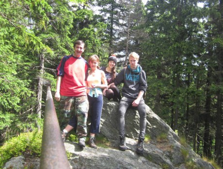 Čtvrtý den vyrážíme zase společně na poměrně dlouhou cestu ze Špindlu až na rozhlednu Žalý. První zastávka je na Černé skále.