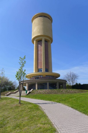 Věžový vodojem v Kolíně vysoký 45 metrů, jehož nádrž má objem 450 m³, byl postaven v letech 1928-30 stavební firmou Ing. Dr. Františka Uhra z Peček, řemeslné práce byly zadány místním živnostníkům.
