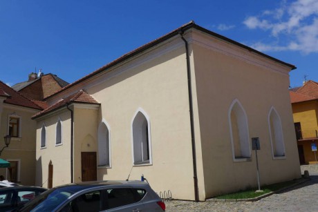 ...Přední synagoga byla postavena v letech 1639-42. Protože převyšovala okolní domy, byla v polovině 18. století o jedno patro snížena...