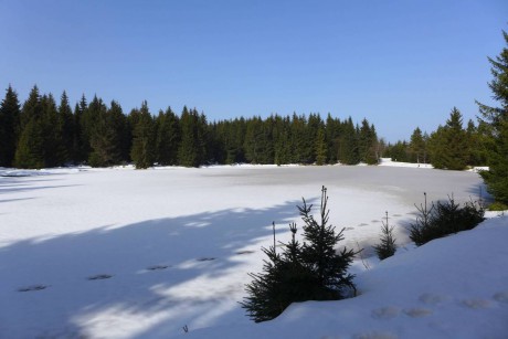 ...míjíme Balzerův rybník a sněhu rapidně přibývá...