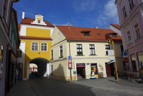 ...město opouštím Hradeckou bránou na východní straně náměstí, která se nazývá podle směru na Jindřichův Hradec. Pochází z let 1525 - 1527, kdy bylo budováno zdokonalené městské opevnění, dnešní podoba je po dalších přestavbách...