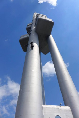 Přímo nad hřbitovem lezou děcka ze školky na televizní vysílač...