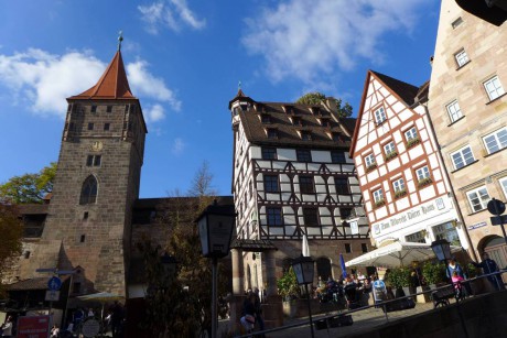 ...malé náměstíčko s hrázděnými domy přímo pod hradem...