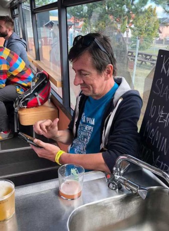 ...Medojed v tom má pořádek, všechna piva jsou zapsaná, tak se nemusíme zdržovat se zadáváním, tak to je paráda, dávám 4,50 ležáku a 5,00 Medojedovi...