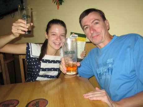 Elí pivo nechutná vůbec, ale zase se s ním ráda vyfotí